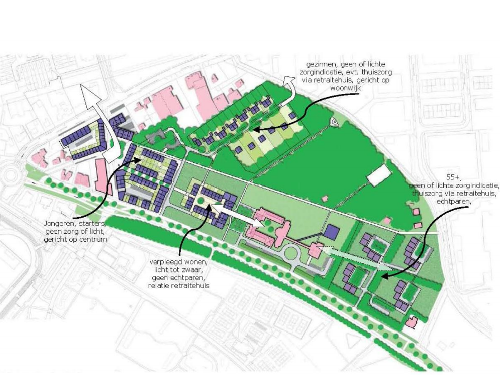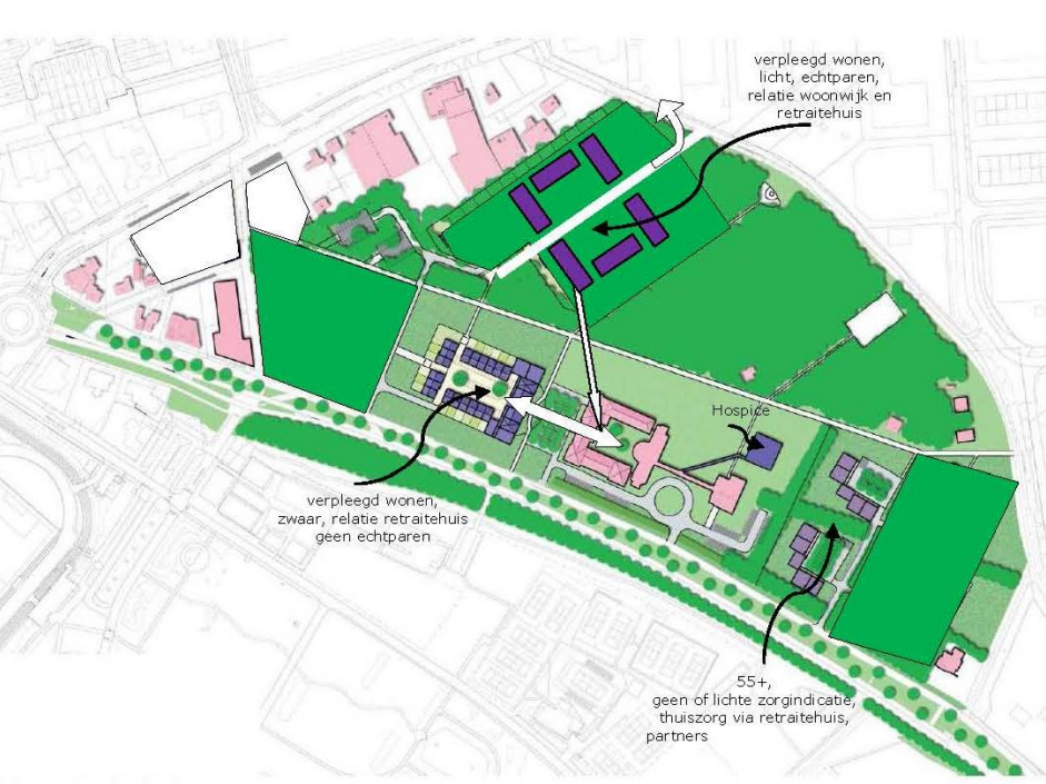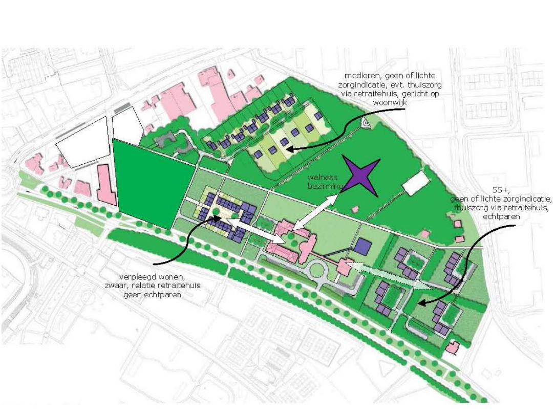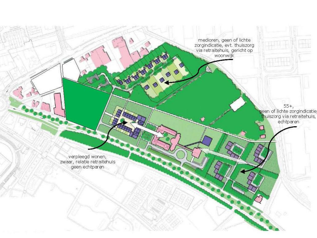 Na een analyse vanuit de groengrijze blik zijn voor het Retraiteterrein in Uden een aantal ruimtelijke en programmascenario's ontworpen variërend van de basis, via krimp en welness tot zware zorg.